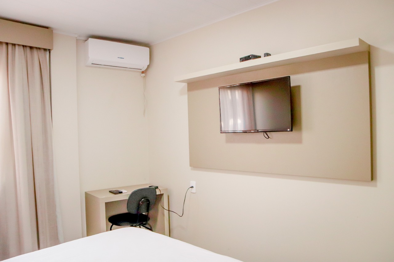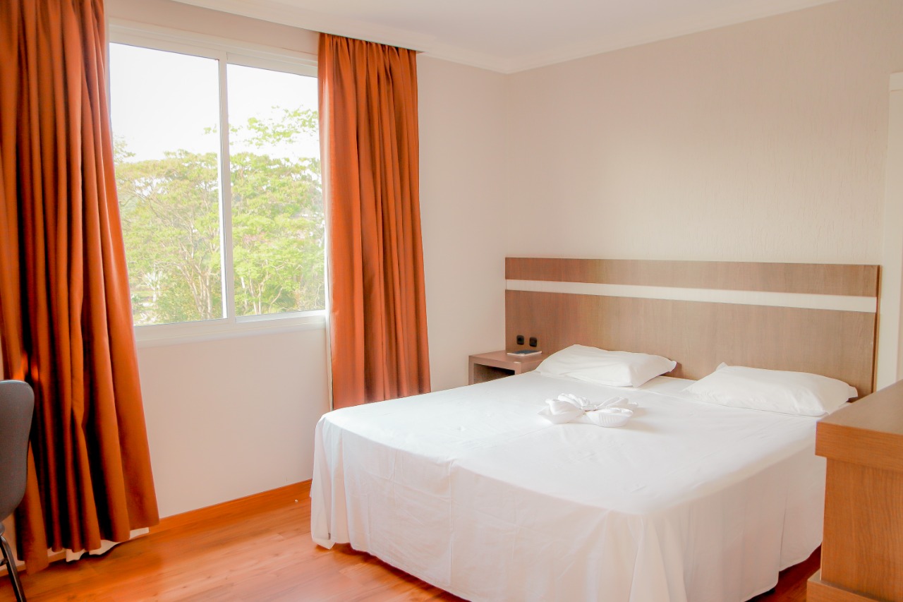 • Camas Box • Frigobar • Ar Split Quente e Frio • Banheiro com Chuveiro a Gás e (ou) Elétrico • Lençóis e Toalhas da Marca Alterburg • TV de Tela Plana com Pacote de Canais da OI TV (consulte grade de canais) • Internet Wi-Fi • Cabideiro para Roupas • Criado Mudo • Xampu e Sabonete • Mesa para Estudos ou Trabalho • Cortinas Blackout • Vista para o Lago.